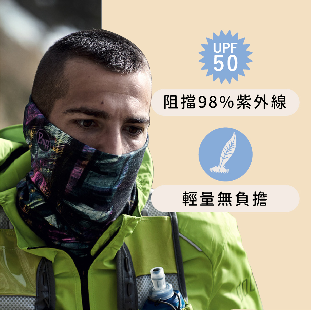 UPF50:織品防曬係數,阻絕約 98% 紫外線。