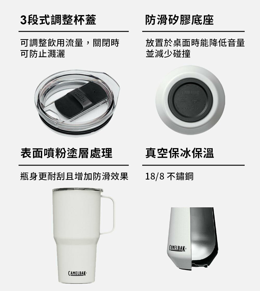 ● 3段式調整杯蓋 – 可調整飲用流量,關閉時可防止濺灑