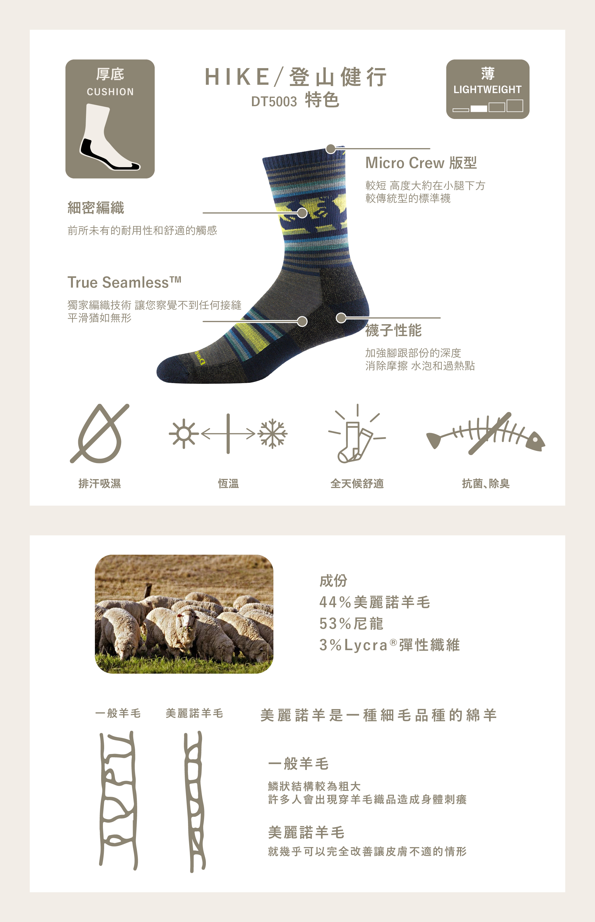 DARN TOUGH 男登山健行旅遊羊毛襪 DT5003
