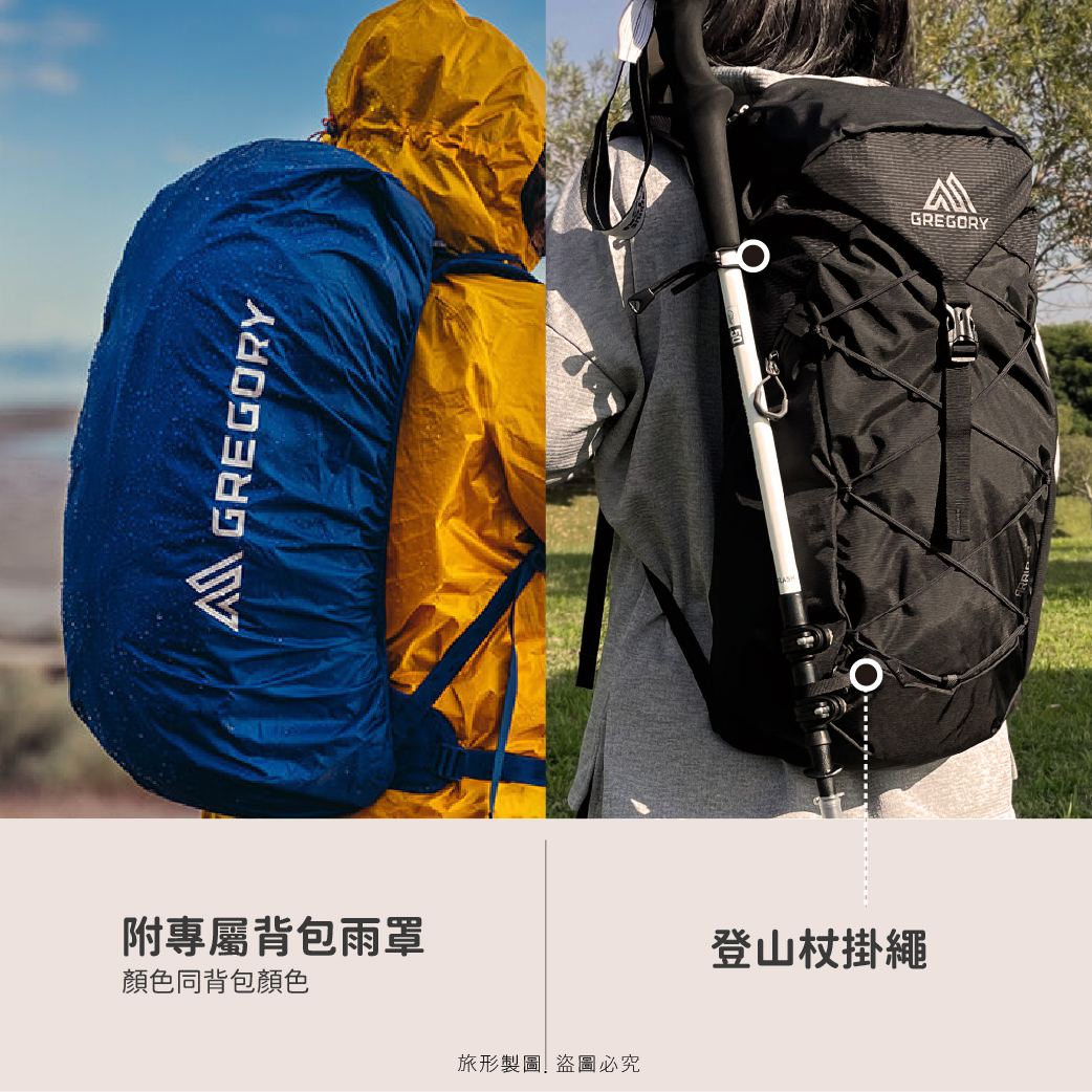 A : 有額外附背包專屬的雨罩,另外背包表布也有防潑水處理,小雨的程度都可阻擋水滲入。