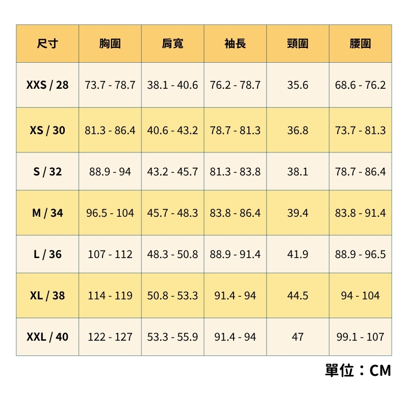 腰圍(Waist):測量穿著褲子時腰部的位置一圈。
