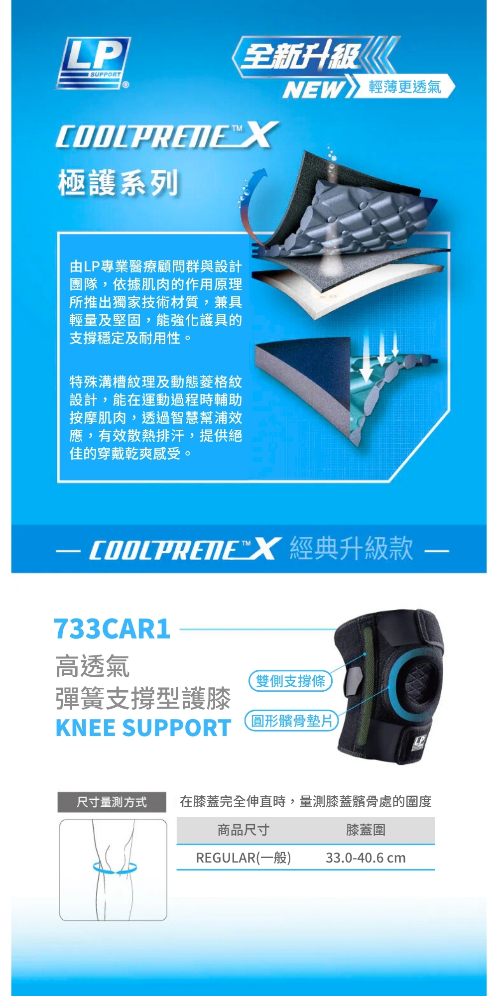 LP 733CAR1 高透氣彈簧支撐型護膝