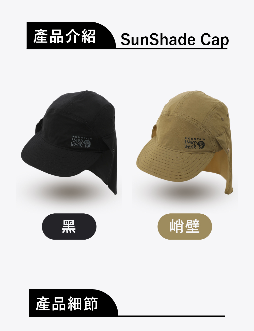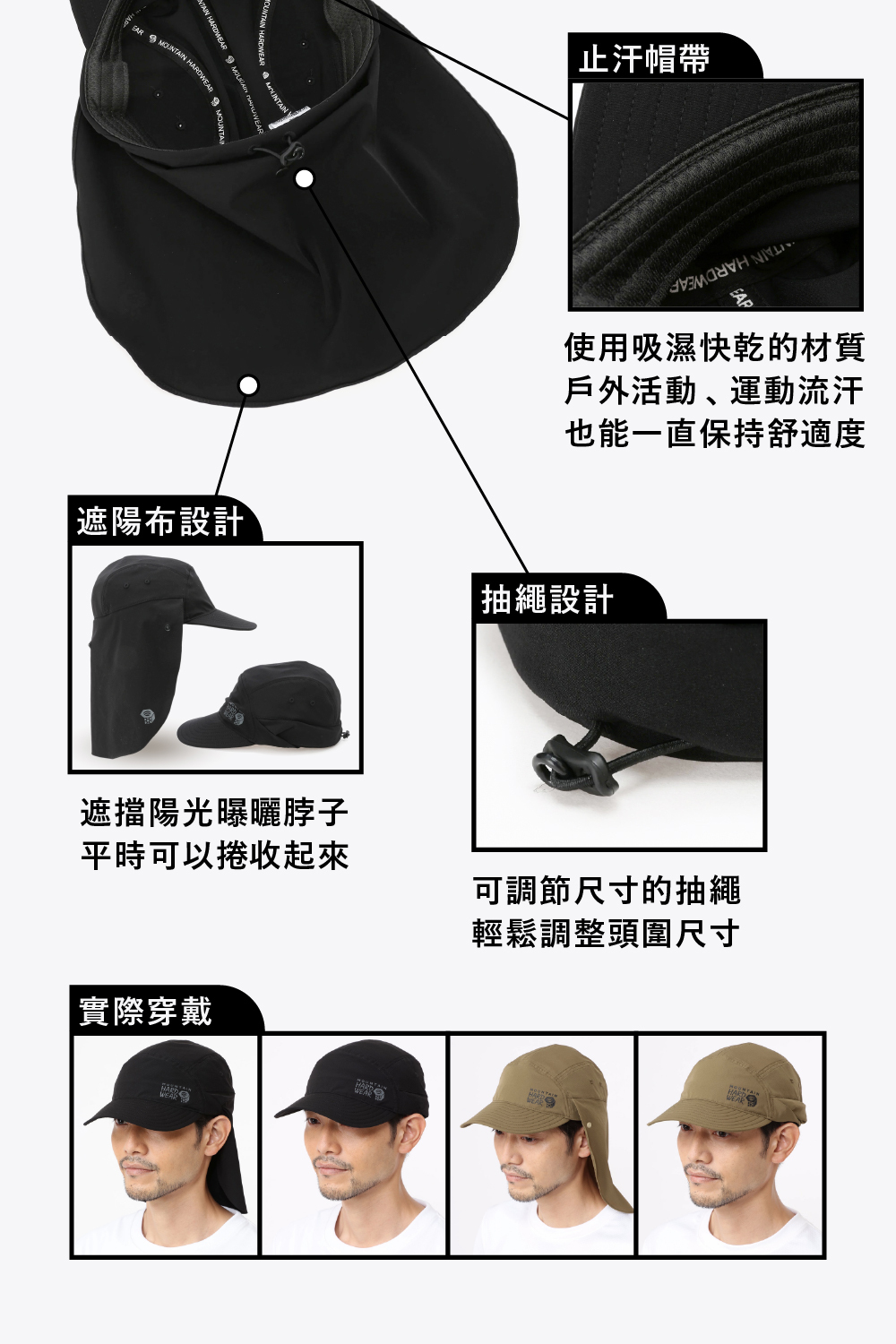 • 遮陽布可以收納在帽子後方(使用按鈕扣收納)
