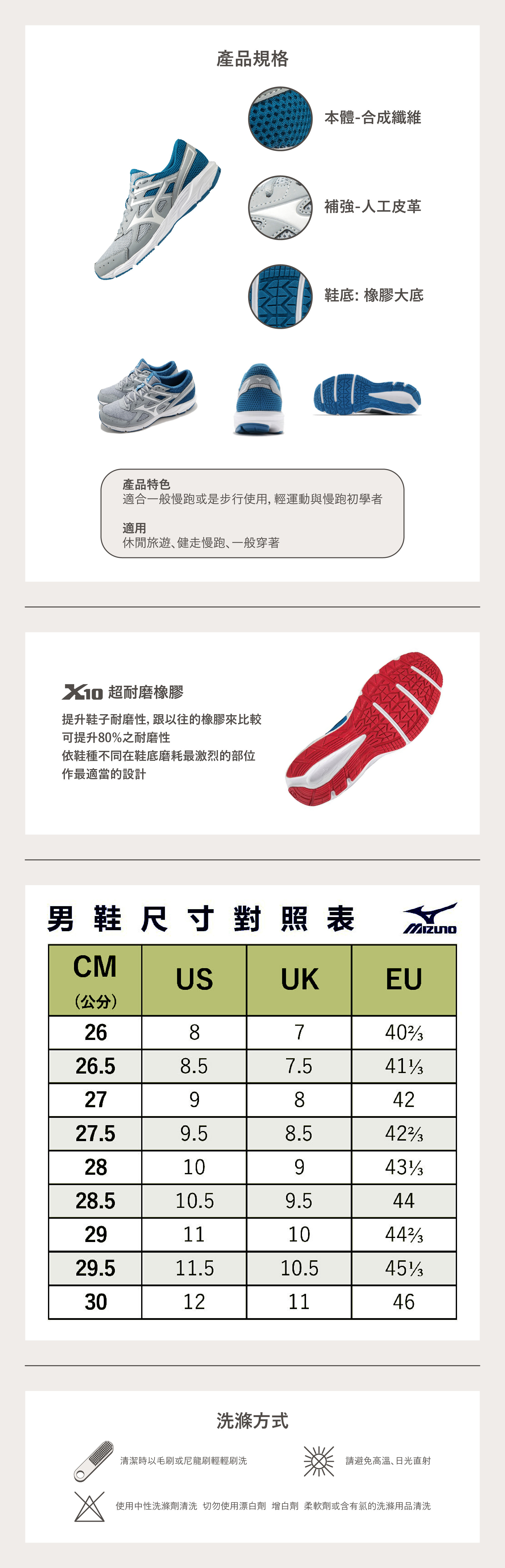材質 : 鞋面: 本體-合成纖維、補強-人工皮革、鞋底: 橡膠大底