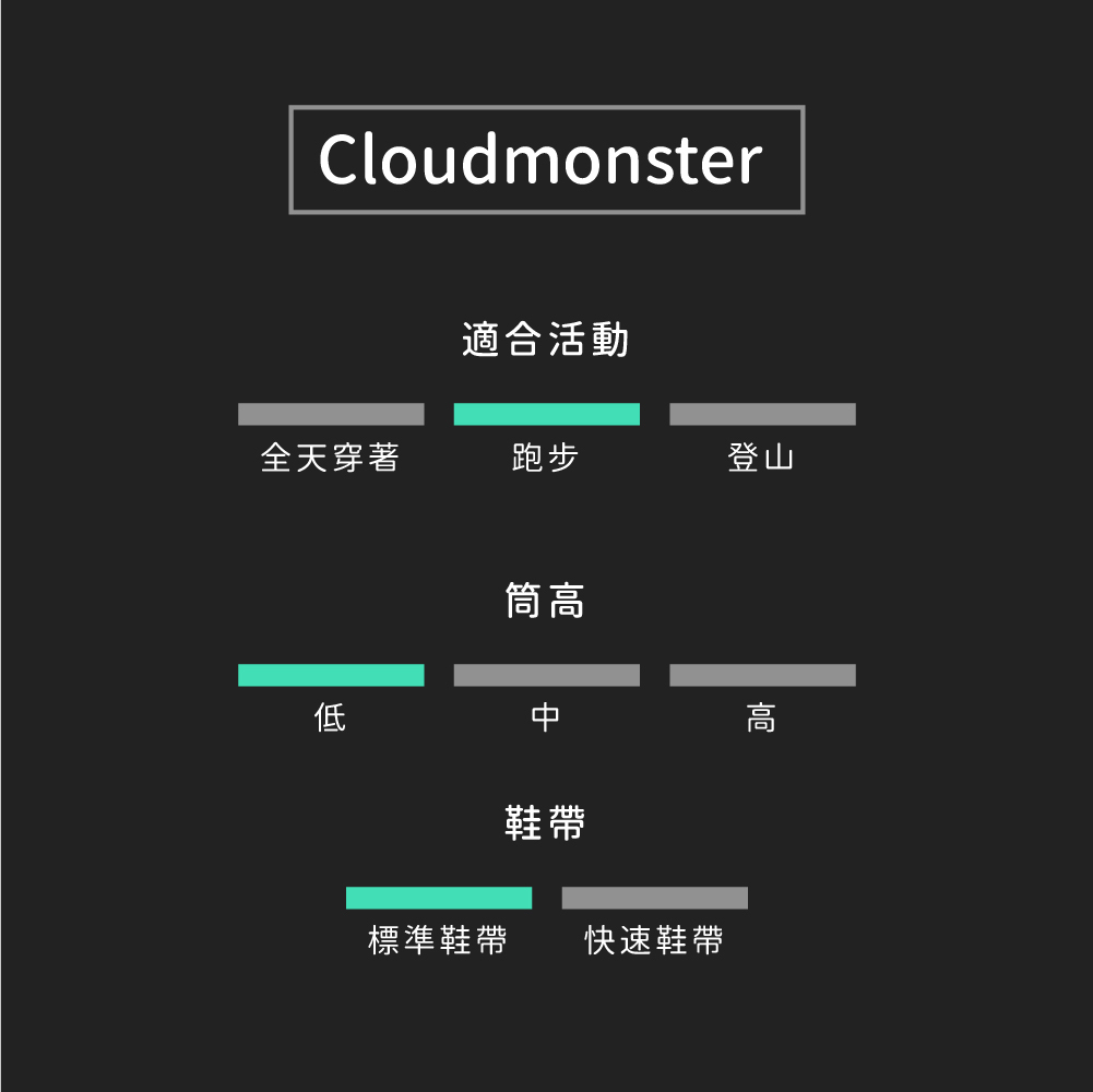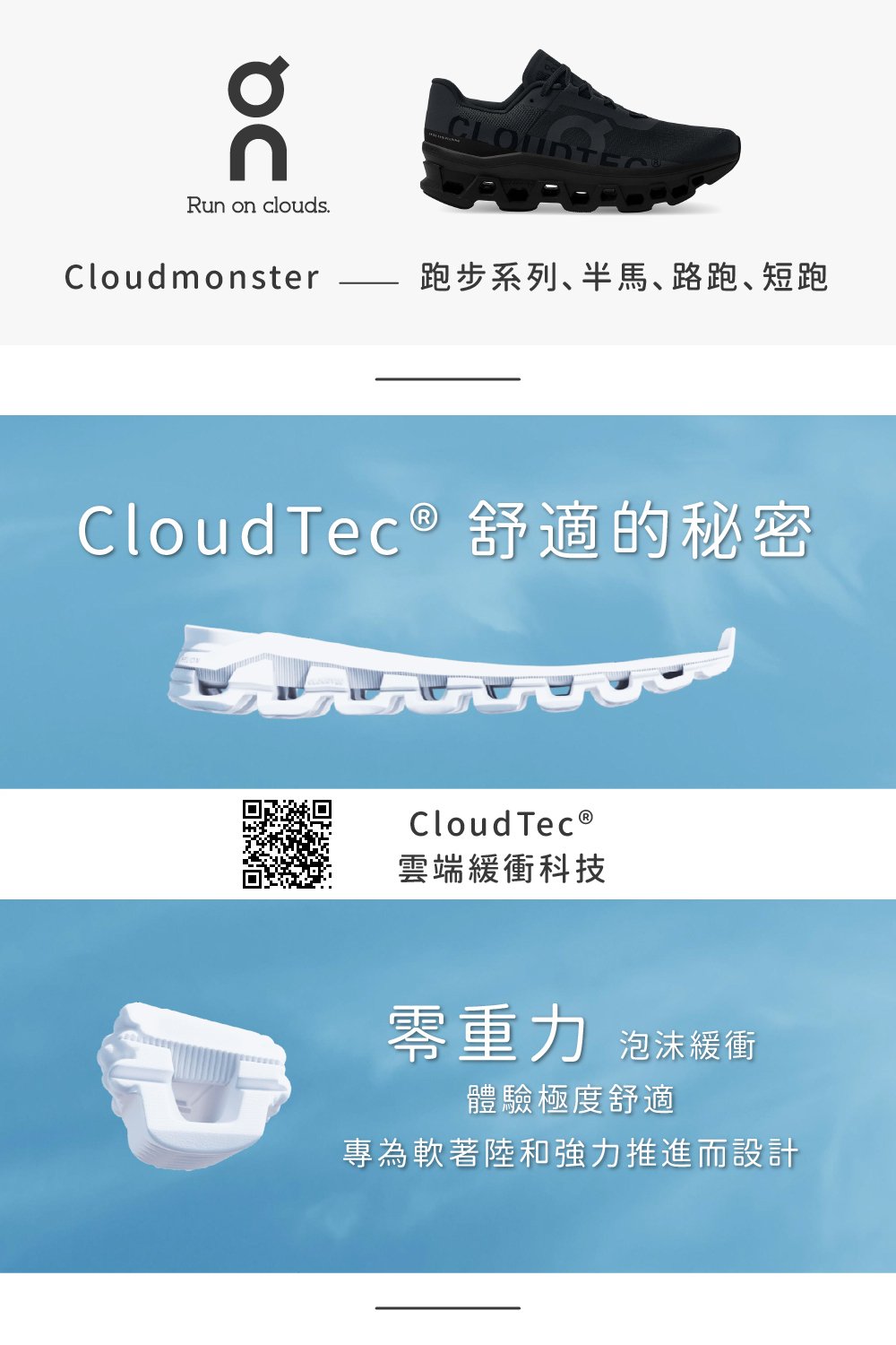 Cloudmonster 有著最獨特創新的外型設計,擁有 On 目前所有鞋款中最大的 CloudTec,