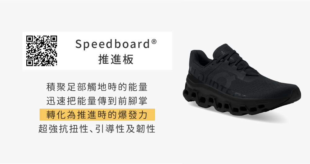 • Speedboard® 推進板: TPU 材質的推進板,能帶來順暢地跑感與能量回饋