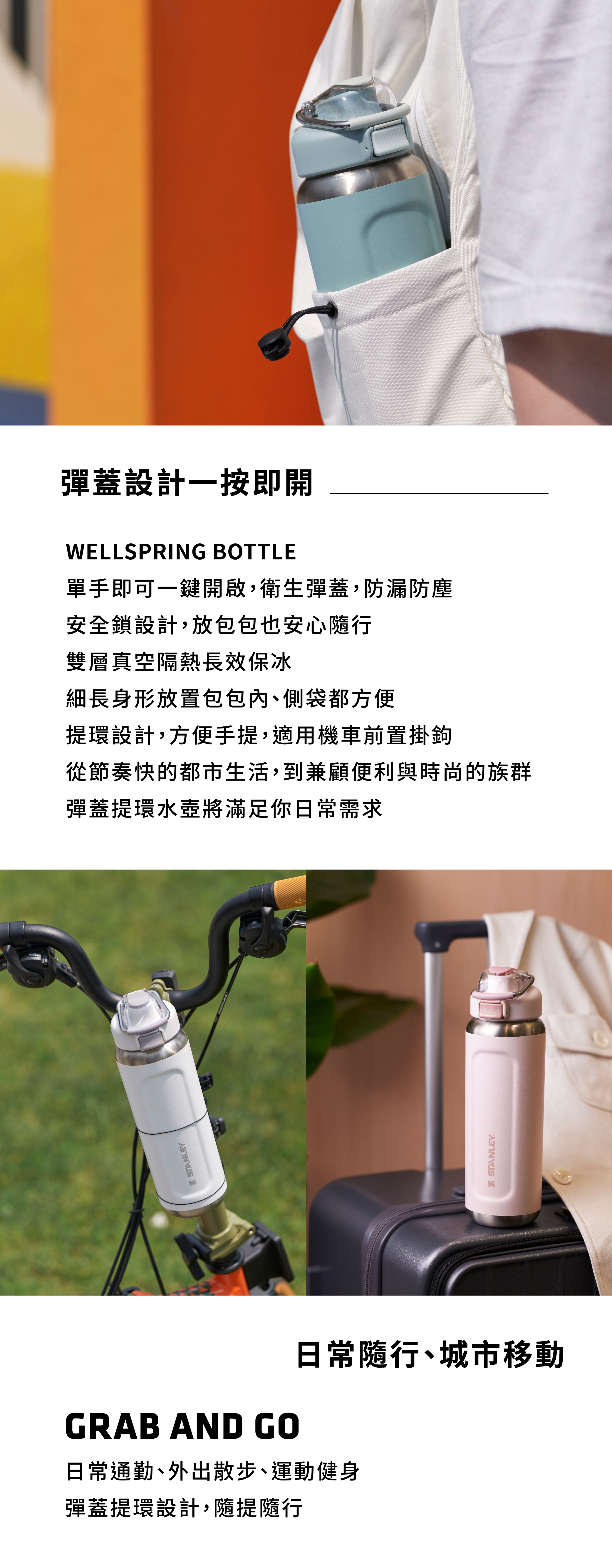 • 單手按壓開關,隨時輕鬆補水