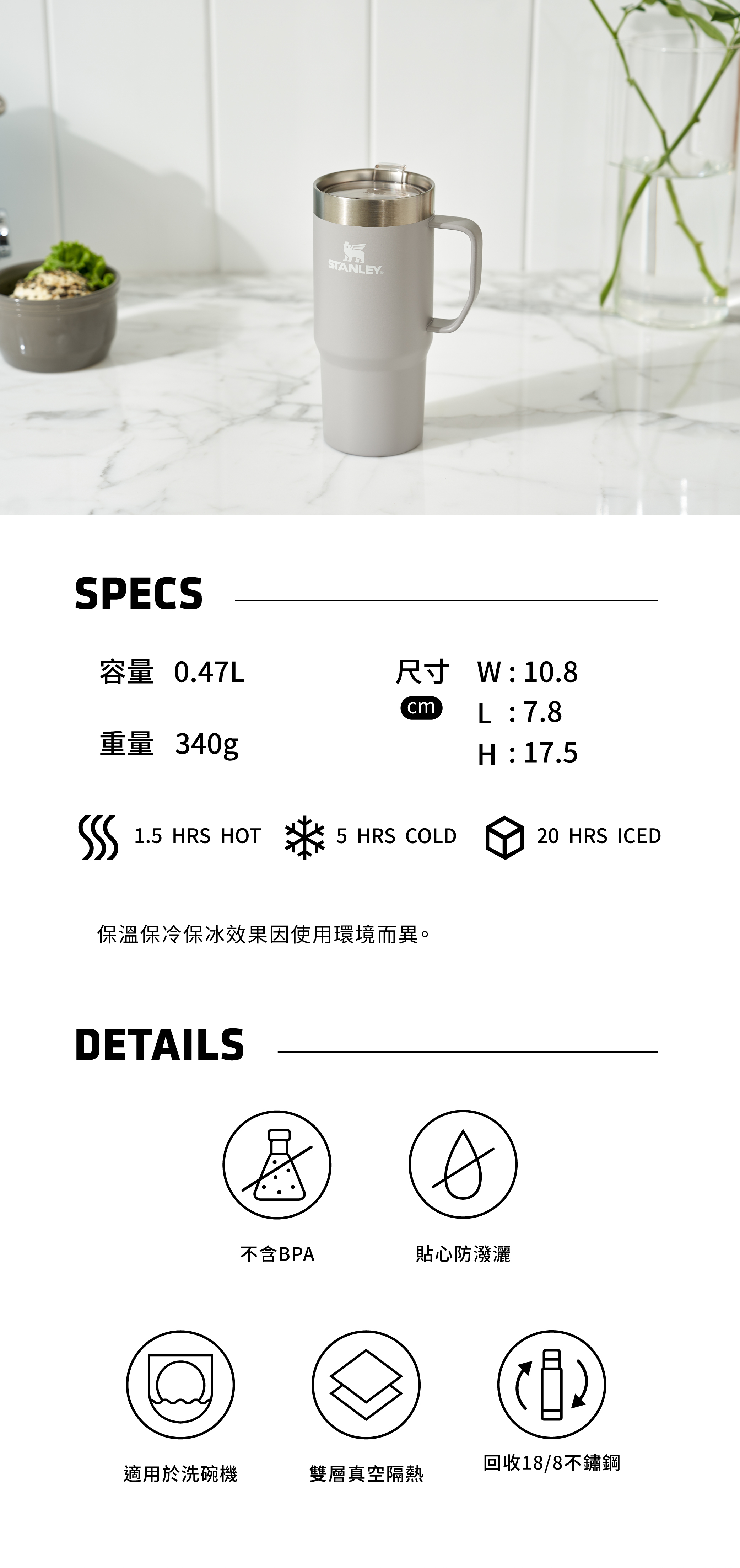 A:是的,STANLEY EVERYDAY 系列即飲馬克杯全系列皆適用於洗碗機,日常清潔維護輕鬆便捷。
