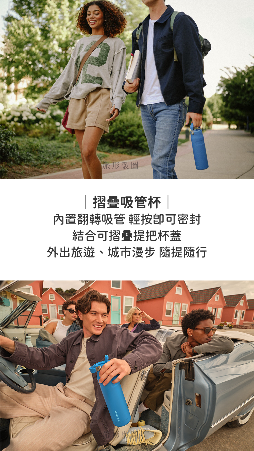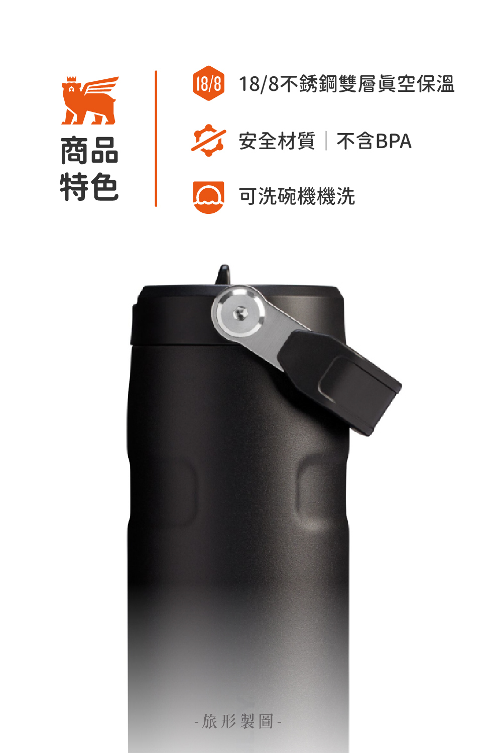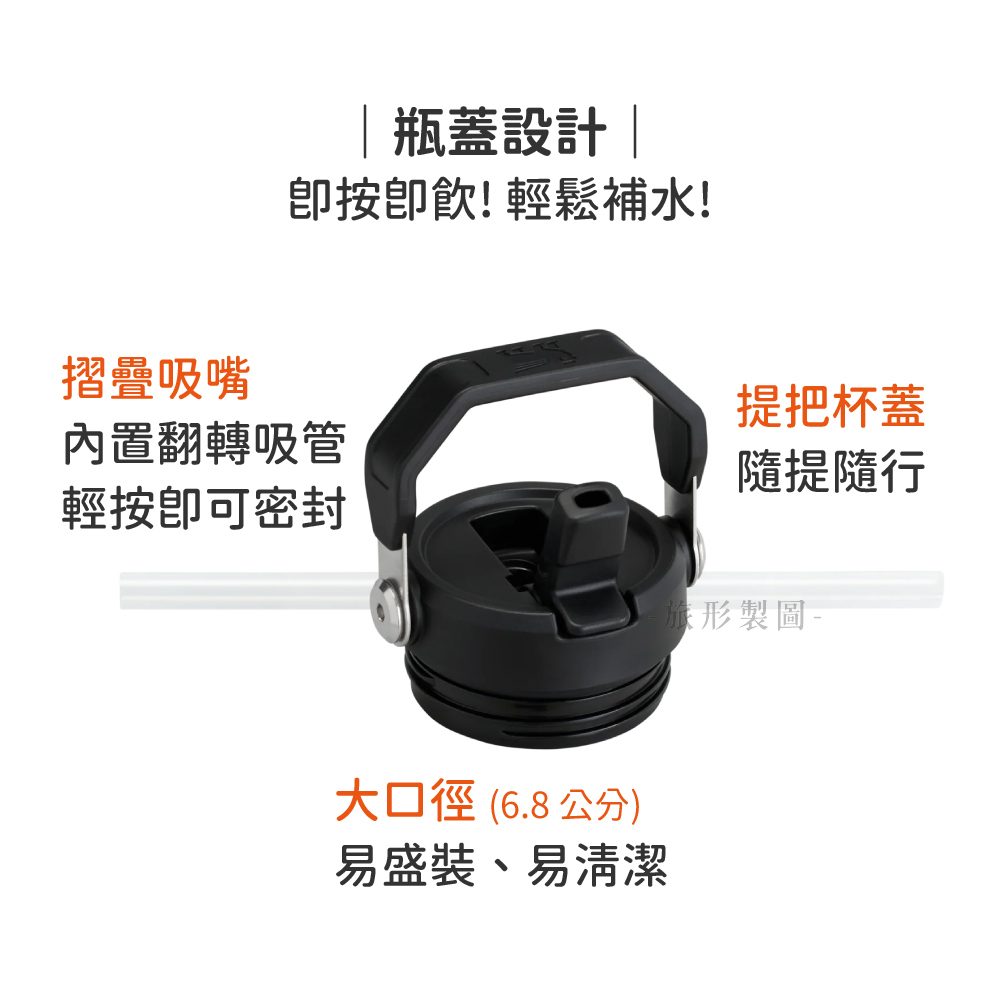 內置翻轉吸管輕按即可密封 結合可摺疊提把杯蓋