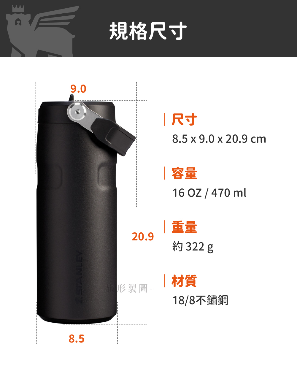 重量只有 322 克 (含手把、瓶蓋、瓶身)