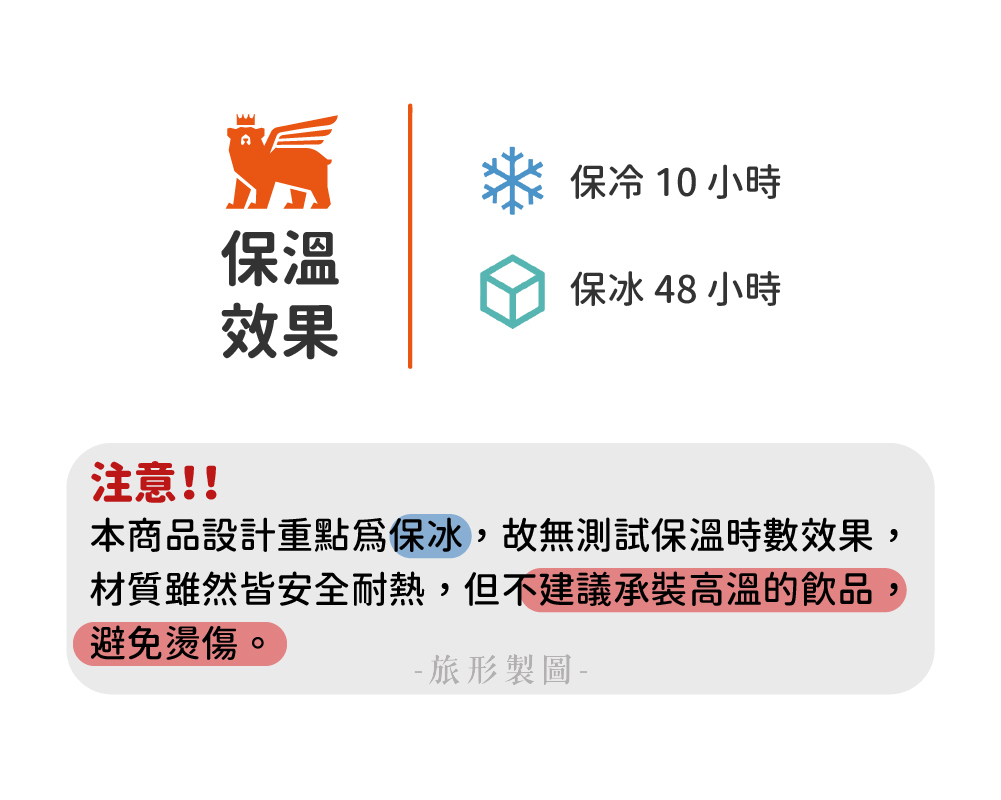 保冷 10 小時、保冰 48 小時,可裝入冰塊
