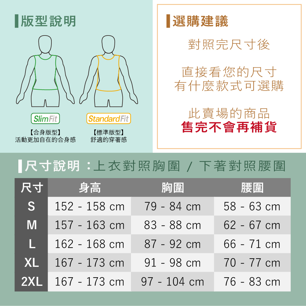◾ 尺寸數據為全台通用官方尺寸表,可依照此表選擇適合您的尺寸。