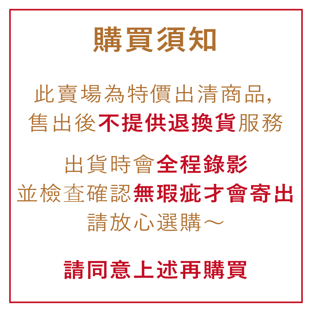 ◾ 出清特價專區商品售出後,不提供退換貨服務,請同意再購買。