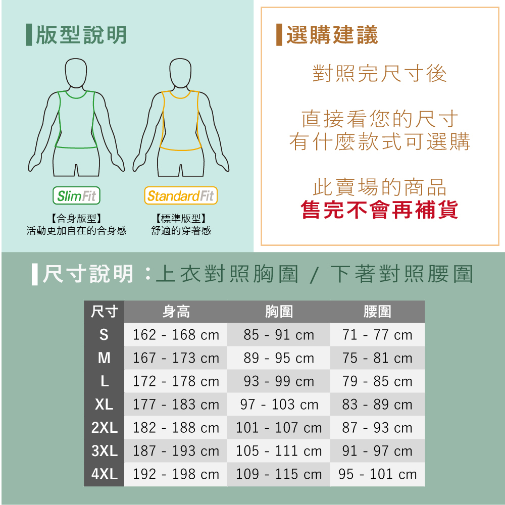 ◾ 尺寸數據為全台通用官方尺寸表,可依照此表選擇適合您的尺寸。